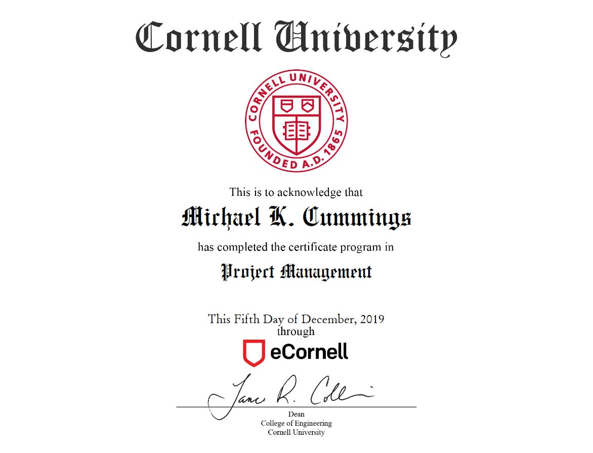 Project Management Certificate (Cornell University)